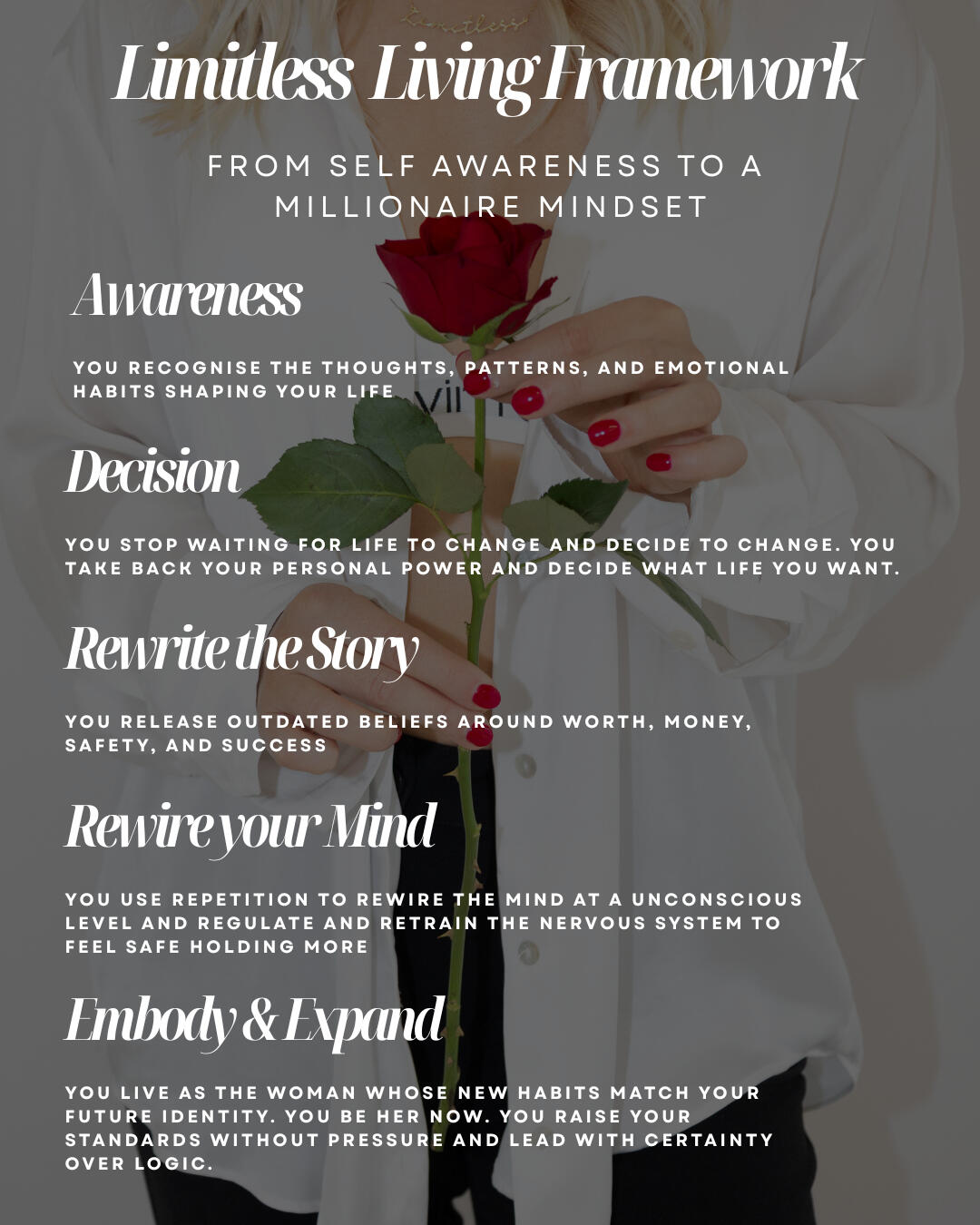 When you become a Limitless Academy you get instant access to our 'Limitless Living Pathway', which is an on demand course that takes you through a 5-phase transformation, guiding you from: